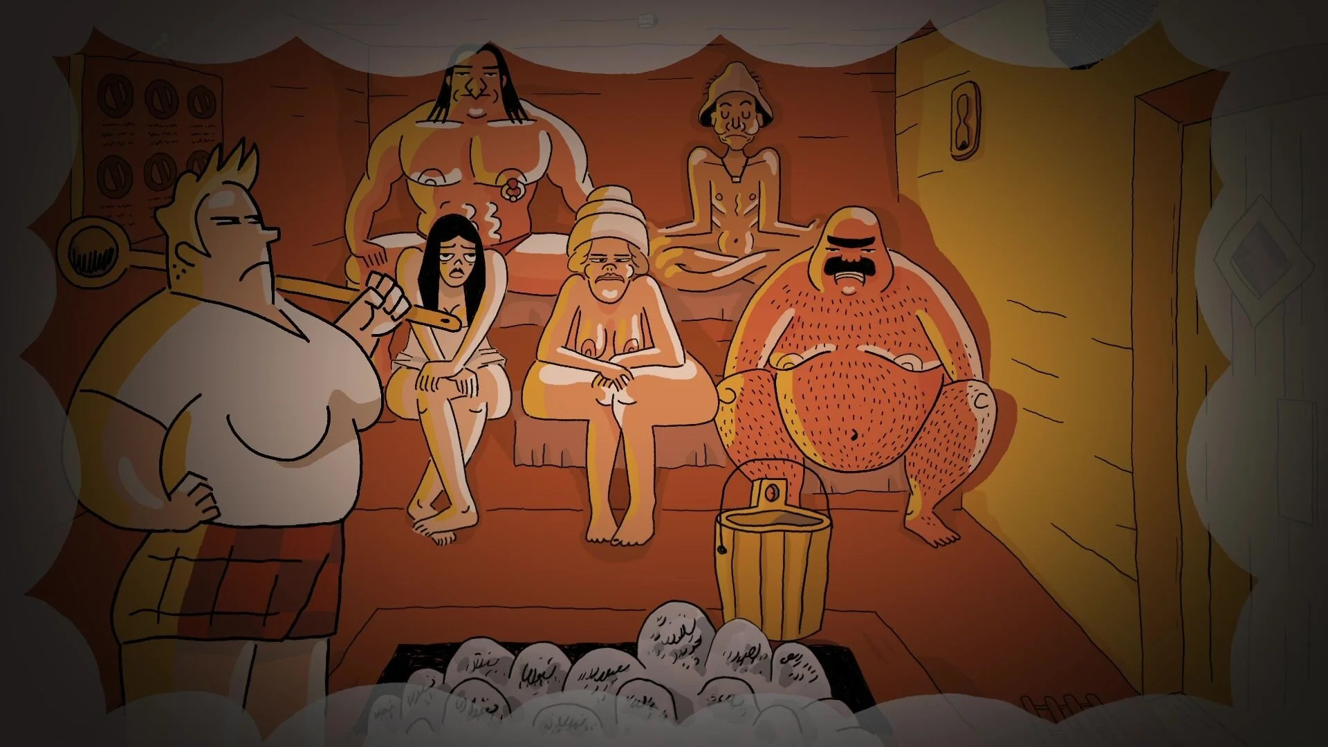 Director Nils Knoblich presents us with a disparate group of people who enter a sauna only to gradually find that they break the rules, much to the chagrin of a trio of burly attendants who are more than willing to throw miscreants into the cold. Knoblich piles on absurdity after absurdity in a striking animation that both speaks of the fears that lay at the heart of social anxiety but also works as a fable about modern society, in which even the most obedient members of the community will be made to bend the rules.”